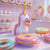 Broschürenkalender mit pastellfarbenen Illustrationen glücklicher Einhörner.